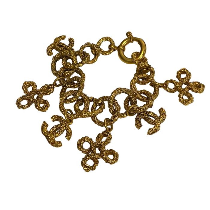 立体感のある溶岩(ラヴァ)調のデザインが特徴的で、ヴィンテージシャネルらしい個性的な雰囲気を持つブレスレット。ココマークがアクセントとなり、ファッション性の高いアイテムとして人気があります。